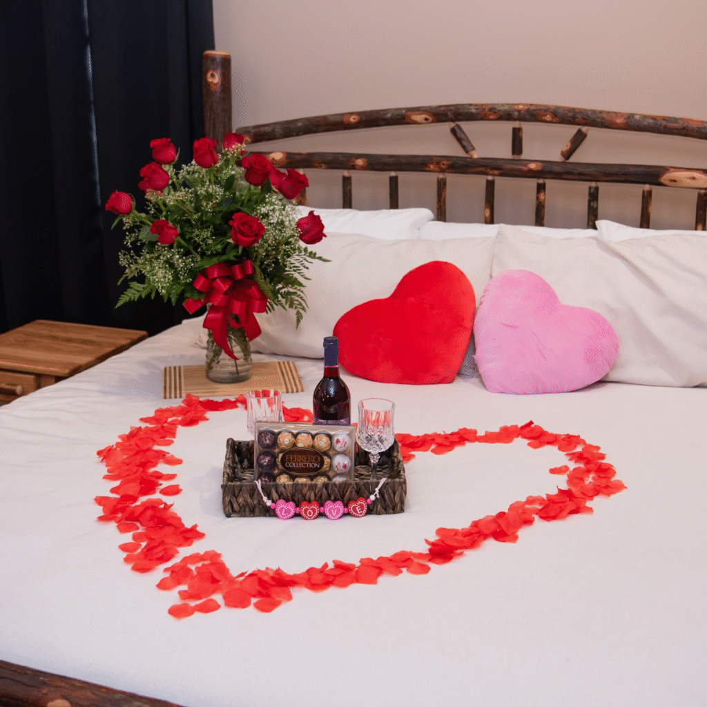 -New Found VisitorWe thoroughly enjoyed our Valentine’s get away. We opted for the additional Romance package and it was well worth it. The room/cabin was so nice when we arrived. It was great to just sit around and do nothing for an entire weekend. We will be back!!